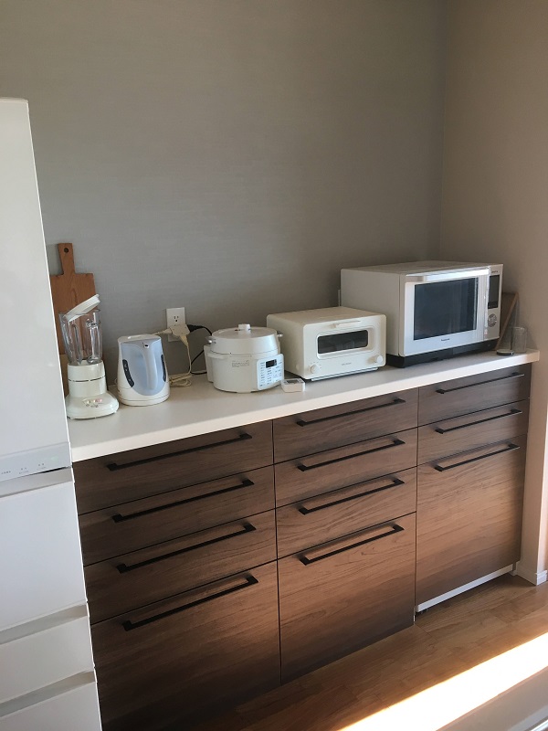 岡山市中区 キッチンカップボード 飾り棚 取付
