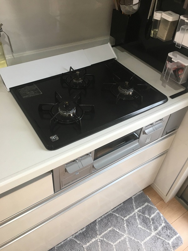今回の工事は、3口ガスコンロから同じく3口ガスコンロへの交換です。お客様の調理スタイルに合わせ、使い慣れた3口タイプはそのままに、お手入れのしやすさや安全性が向上した機種へ交換しました。