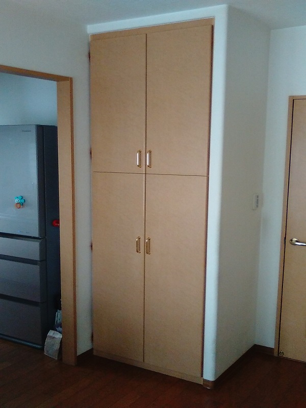 扉加工の内側です。丁番を1つ追加したのでしっかりスムーズになって奥様も大喜びでした。