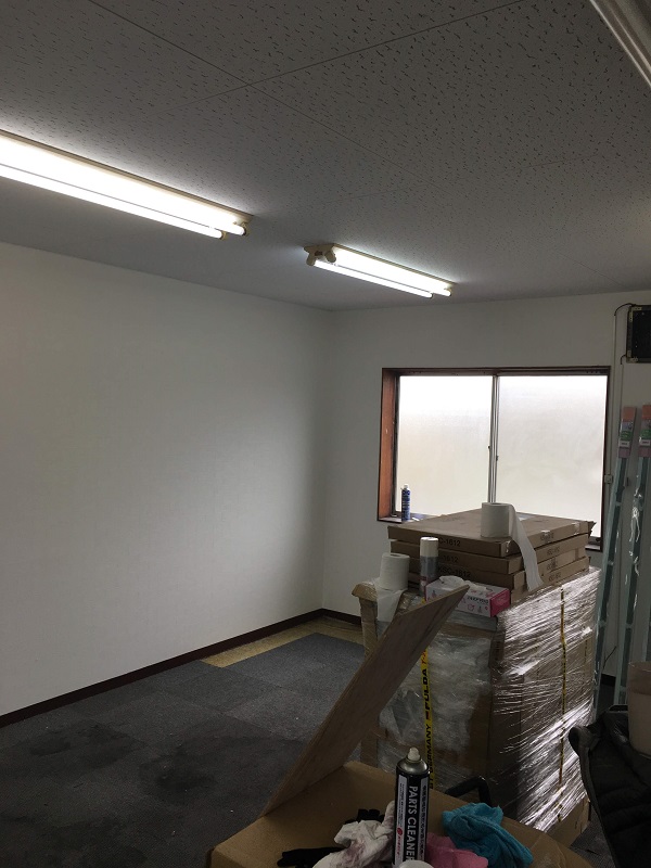 倉敷市北畝にて、事務所改装のために壁と天井のリフォームのご依頼を頂きました。
