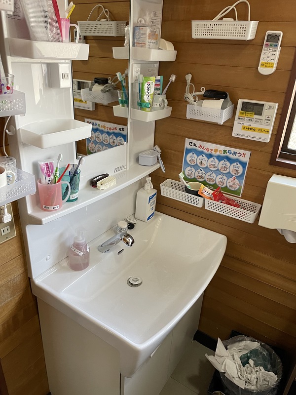HOME > リフォーム例紹介:洗面所・洗面化粧台 > 倉敷市 洗面化粧台 自動水栓 交換 リフォーム