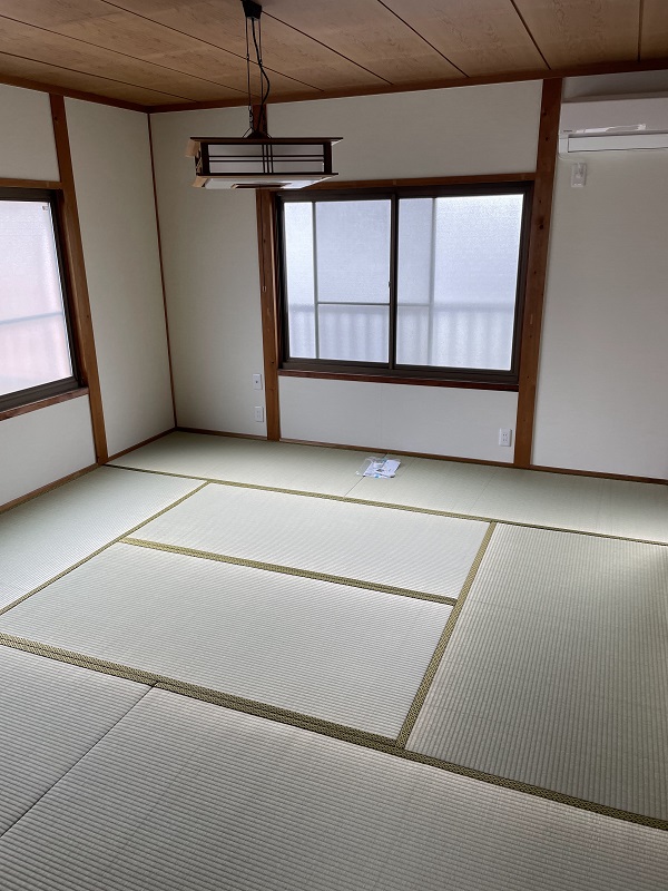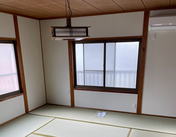 畳表替え・土壁からクロス仕上げなど和室のリフォームのご依頼を頂きました。 合わせてエアコン取り替えの依頼を頂きました。クロスを貼り替えるときにエアコンも取り替えすると、エアコン裏のクロス汚れも無くなり綺麗になるのでオススメです。