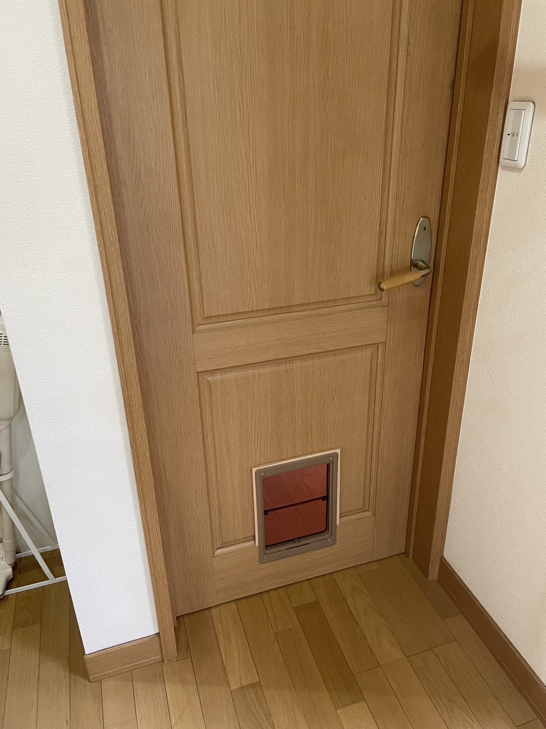 開き戸も綺麗に取り付けできました。 ペットドアの取り付けもエルデザインにお任せ下さい。 ★ペットドア取り付けのメリット★ @冷暖房費の節約ができる扉を開閉する回数が多いと、冷暖房効率が 悪くなってしまいます。 ペットドアがあれば、ペットが出入りする 瞬間のみの開閉で済み、室内の温度変化 を最小限に抑えることができます。 そのため、通常の扉と比べて、 冷暖房費の節約につながります。 A通常の扉を開閉するよりも安全性が高い常の扉を開閉してペットを通す場合、 ペットの体を挟んで怪我させてしまう 危険性があります。 ペットドアはペット用にできており、軽い材質を 使用しているため、ペットの体を傷つける 心配がありません。 ペットのサイズにあった適正なドアを選べば、 安全性が高く、事故防止にもつながります。 Bロックをかけてペットの出入りを制限できる掃除やフローリングのワックスがけの際など、 ペットの出入りを制限したいときは、 ペットドアにロックをかけられます。 倉敷市でペットリフォーム対応の施工業者を お探しなら、エルデザインにお任せ下さい! 壁・床・ドア枠のキズ修繕から、ペットドア取り付け、 脱走防止策、ペットの足腰に優しい素材の提案まで。 ペットに関する様々なお悩みもオーナー様の ご意見を伺いながら形にします! 【猫家具商店】の専用ページ【脱走防止策】の専用ページ【ペット床材】の専用ページ【エコカラット】の専用ページペットリフォームの専用ページ