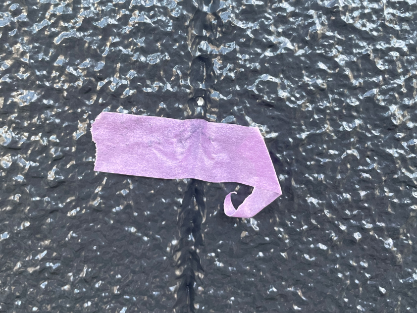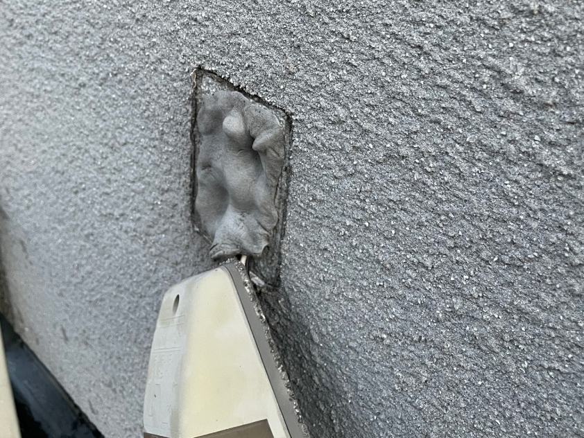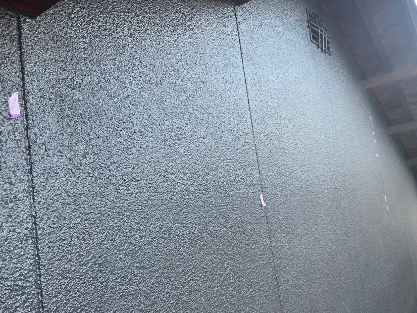 外壁塗装の検査です。 塗れていないところに目印のマスキングテープを貼っていきます。