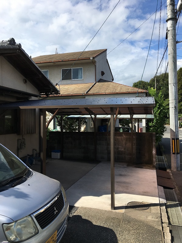 HOME > リフォーム例紹介:外構・エクステリア・門扉 > 都窪郡早島町 T様邸 カーポート 屋根葺き替え