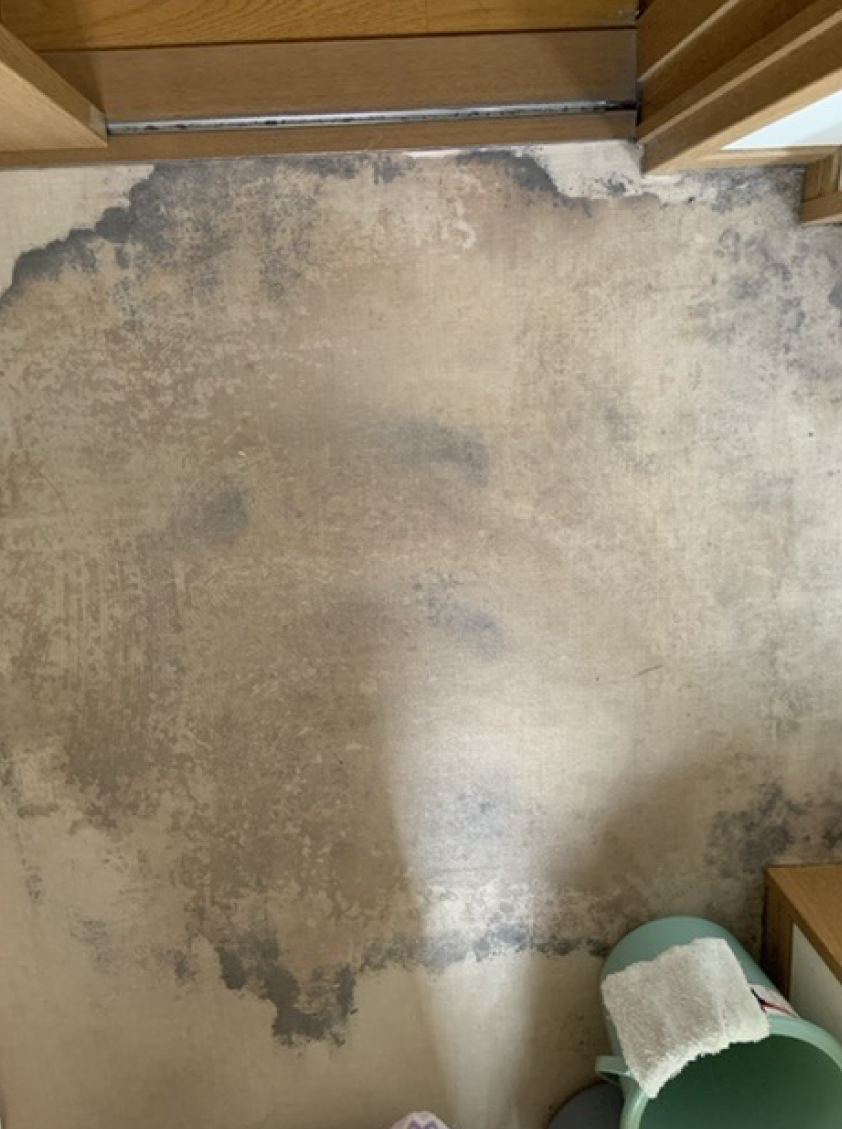 ユニットバスから洗面所の床に水漏れしていたため床がカビてボロボロになっていました。