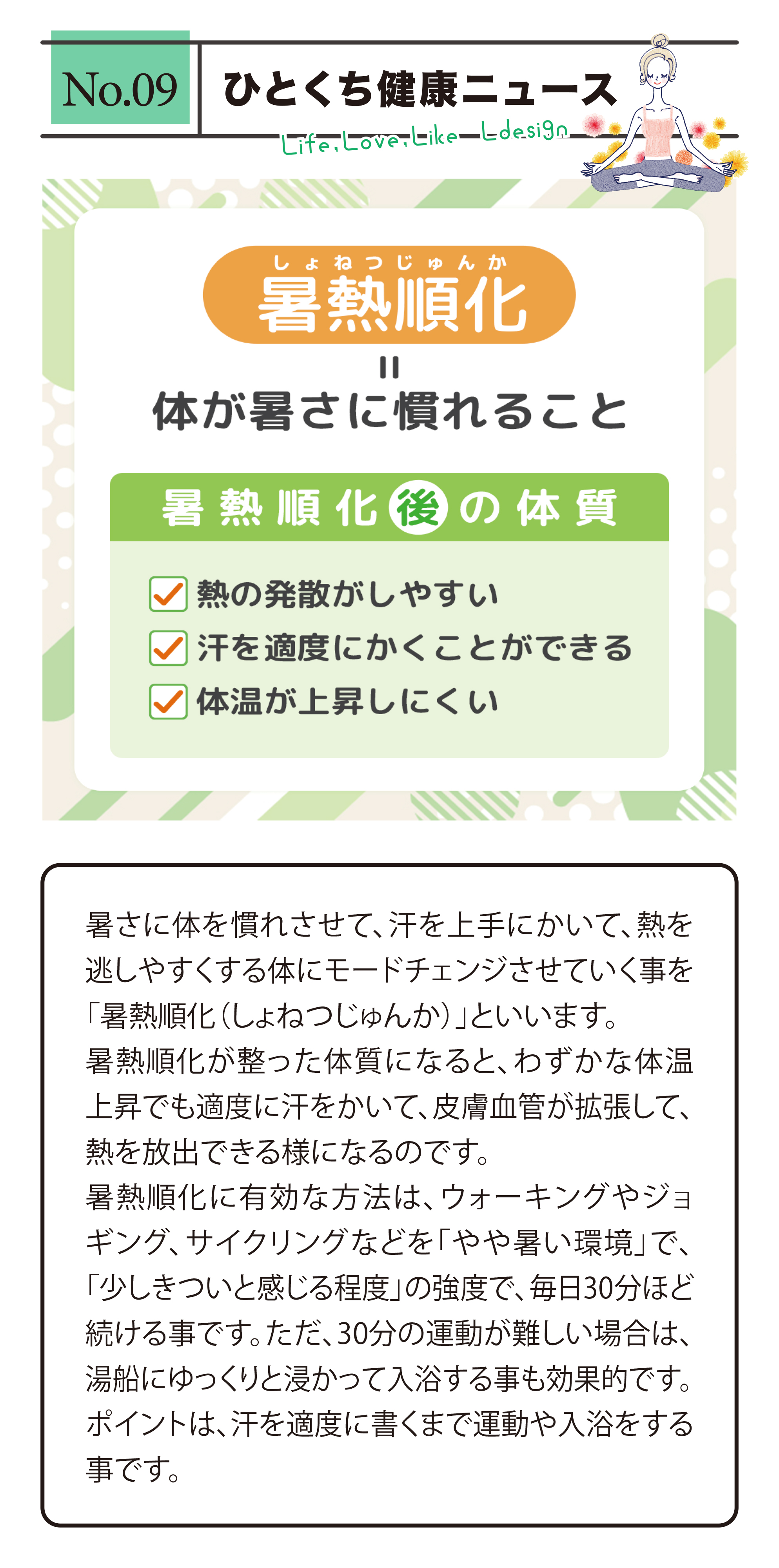 暑さに体を慣れさせる『暑熱順化』のご紹介です。